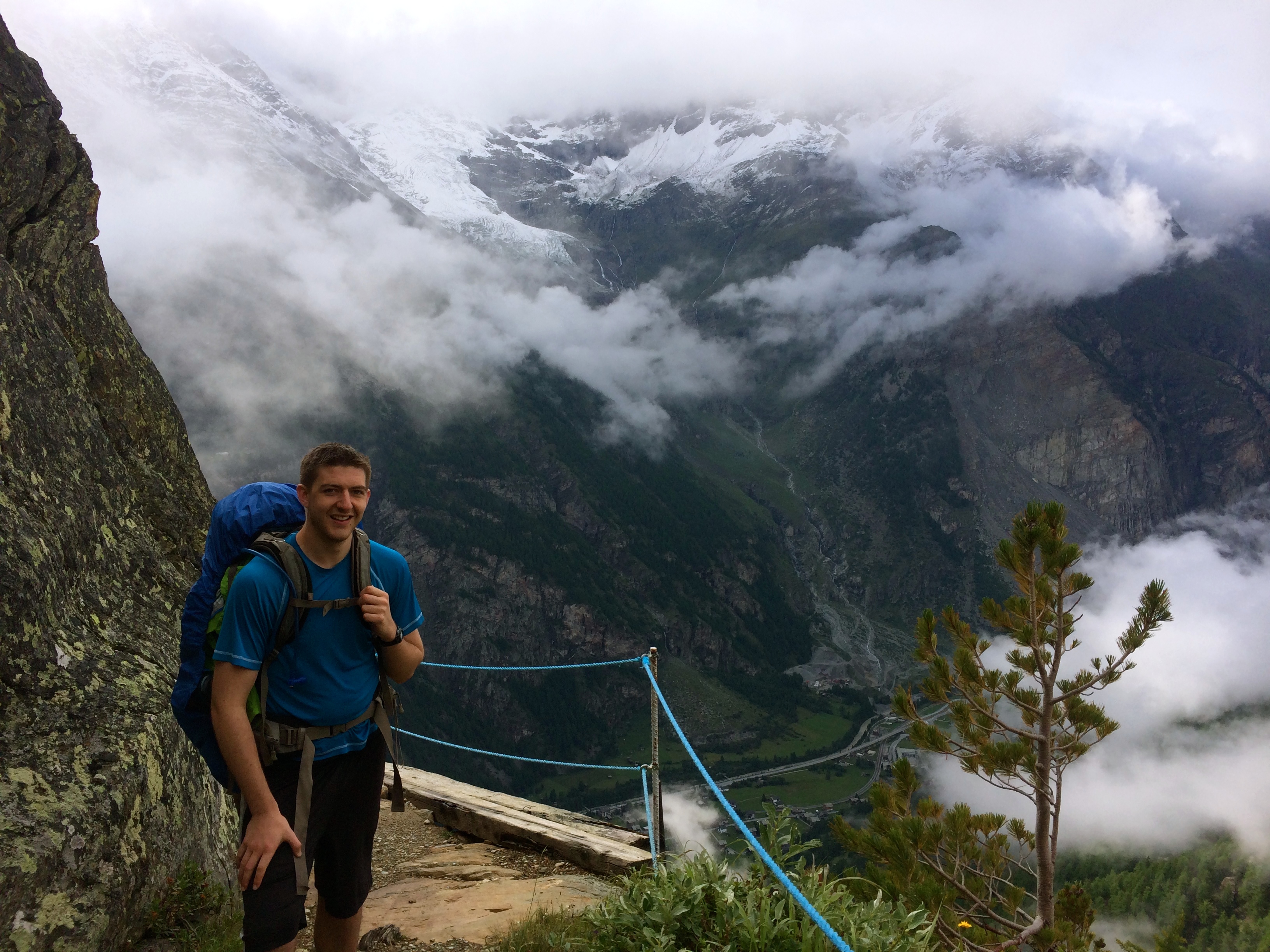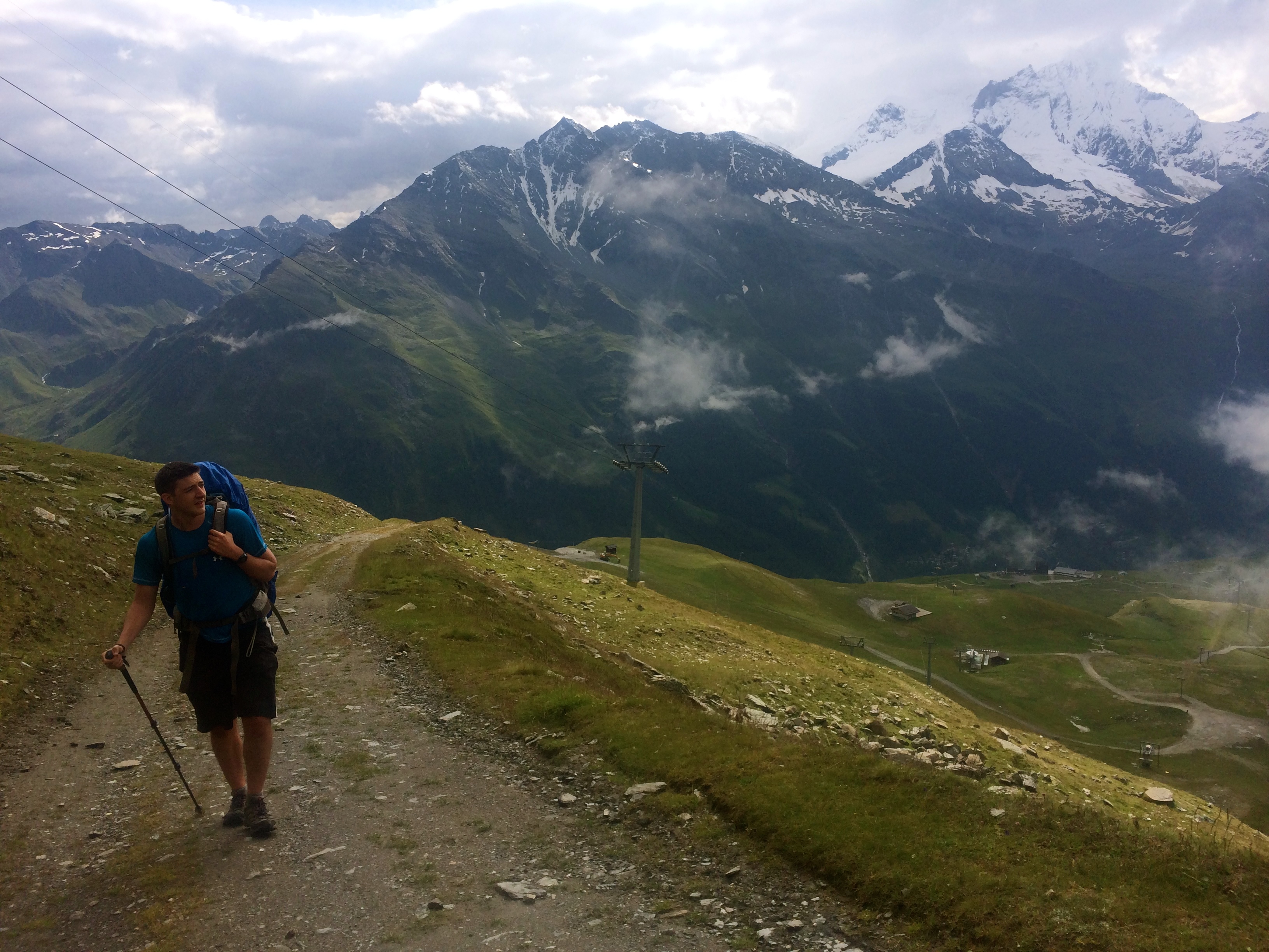 We thought we had gained our elevation for the day, but a very wet July in the Alps resulted in countless rockfalls that closed the trail after Tufteren. Much to our dismay we headed down from that little hamlet back to Zermatt. Essentially making for a lovely morning hike that got us no where. I was however thankful to have the opportunity to buy a rain jacket in one of the many overpriced Zermatt outdoor stores, to replace my soft shell jacket that was just not quite waterproof enough to cut it in the very wet weather. Purchases made, we hopped on a short train up the valley to Tasch where we could hike back up to the Europaweg and get back on track.