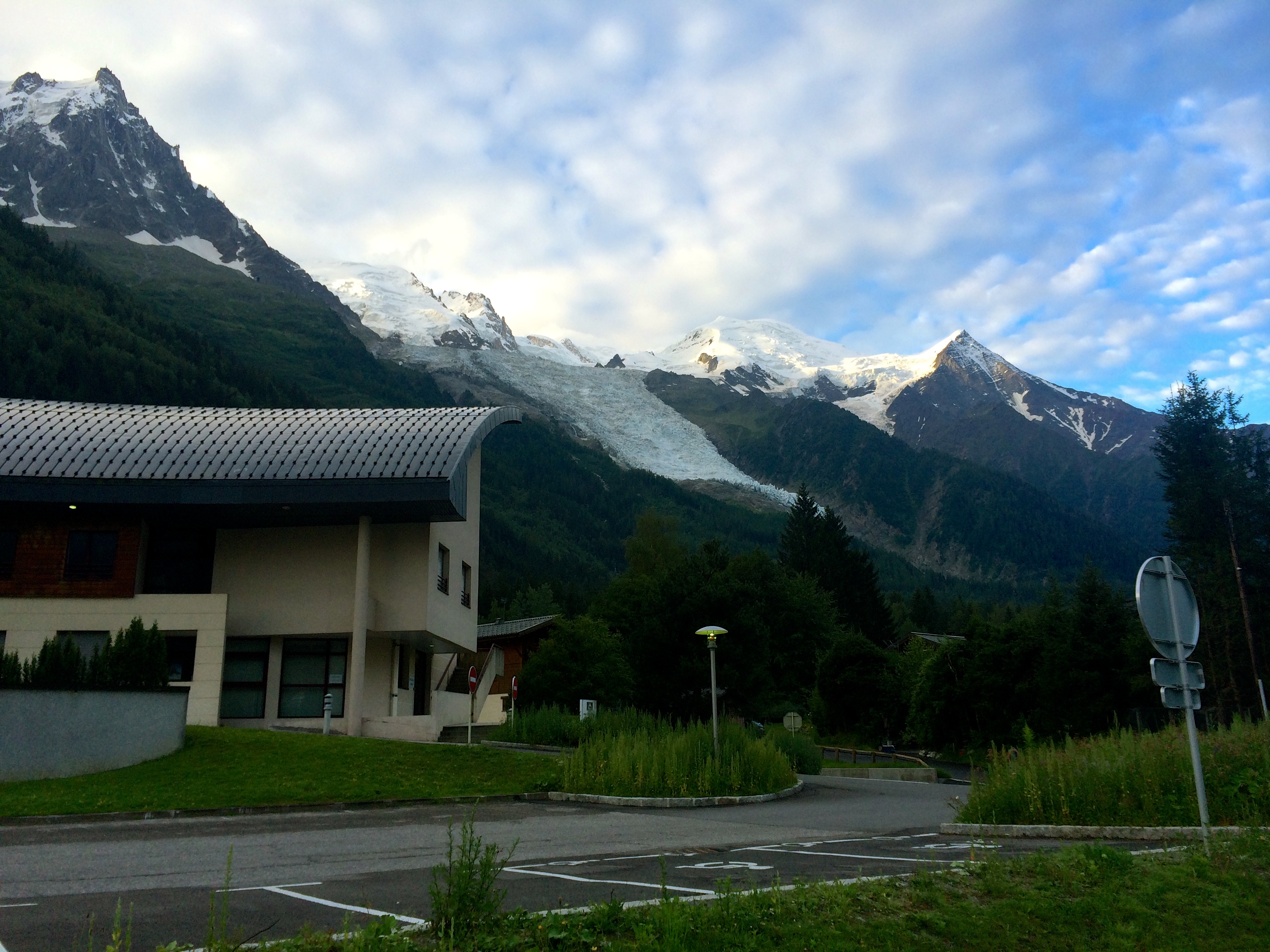 After enjoying food and drink, we went on the hunt for the campground. With sore feet, the wandering was not appreciated, and we finally walked back up the road about half a mile to find the Camping Pierre Semard campground tucked away on the western slope of the valley. Apparently there is also the Camping du glacier d’Argentiere on the south eastern edge of town.